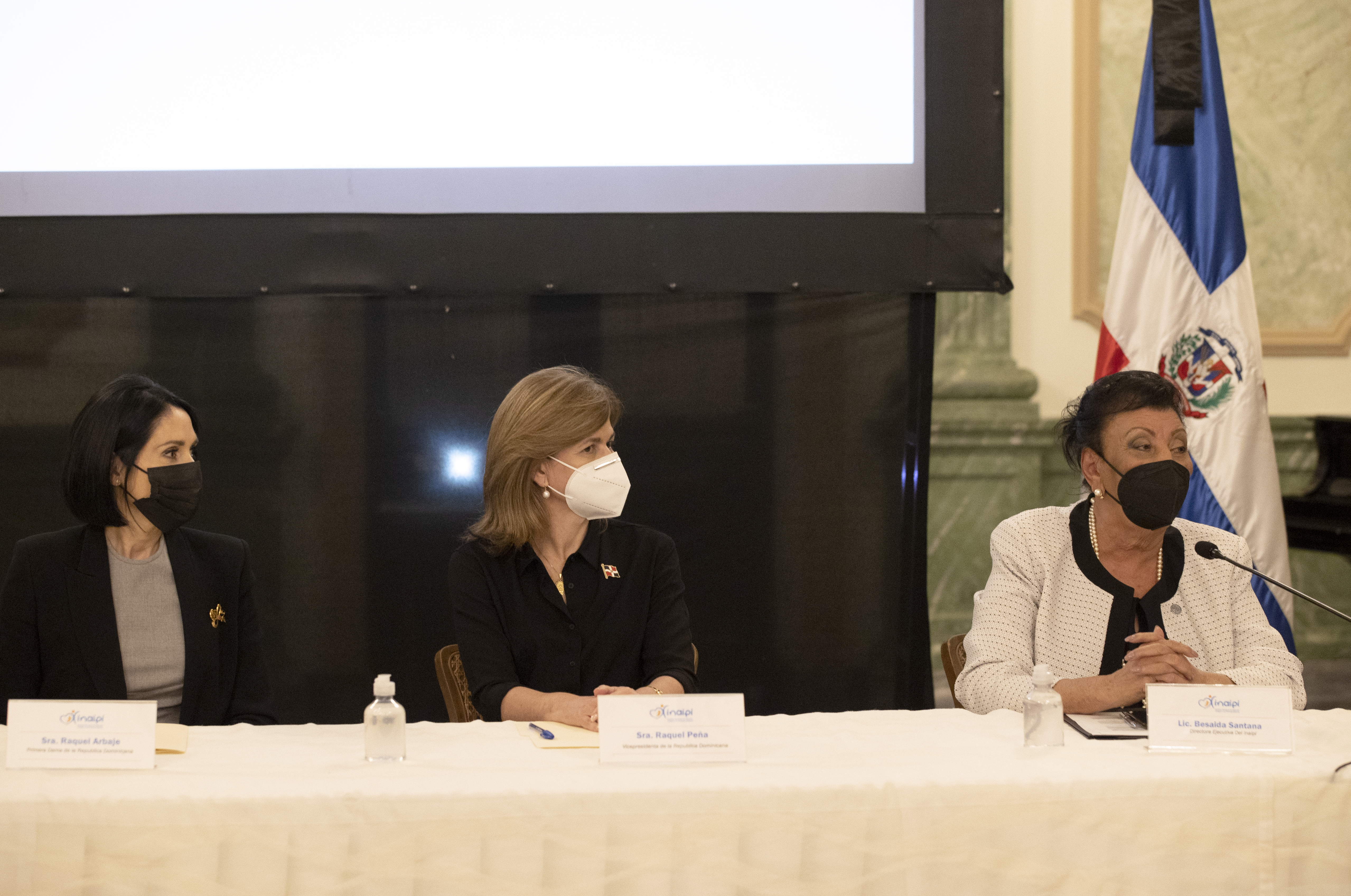 La vicepresidenta Raquel Peña y la primera dama Raquel Arbaje encabezan el acto protocolar de la firma de acuerdo Interinstitucional entre la Liga Municipal Dominicana (LMD), la Federación Dominicana de Municipios (FEDOMU) y el Instituto Nacional de Atención Integral a la Primera Infancia (INAIPI).