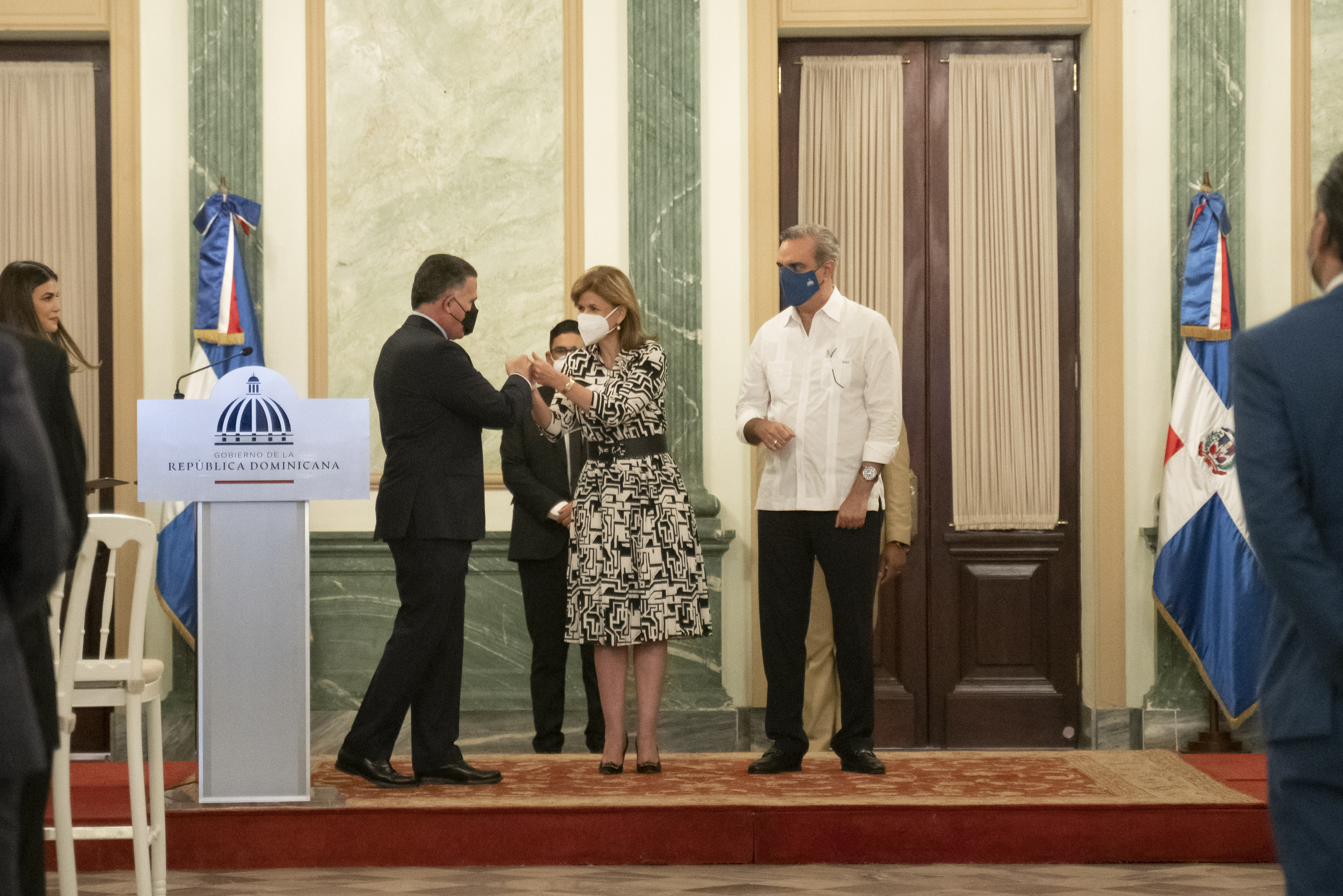 El presidente Luis Abinader y la vicepresidenta Raquel Peña encabezan un encuentro con representantes del sector privado, grandes aliados del Plan #VacúnateRD. Santo Domingo, República Dominicana. 13 de Abril 2021. Vp/ Jhon Escalante
