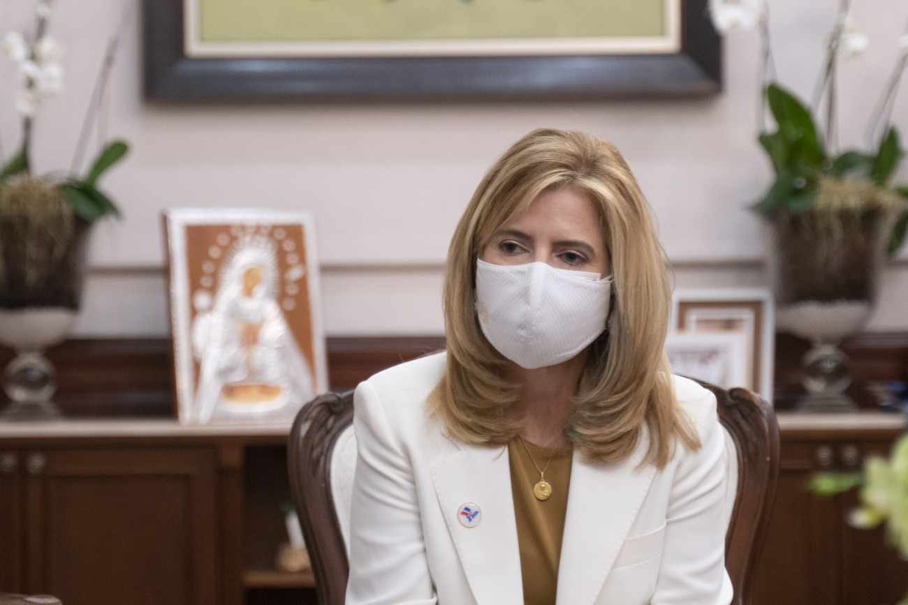 La vicepresidenta Raquel Peña sostiene una reunión el Dr. José Joaquín Puello, director de la Ciudad Sanitaria Luis Eduardo Aybar, y la Sra. Lucia Corripio. Santo Domingo, República Dominicana. 15 de Abril 2021. Vp/ Jhon Escalante