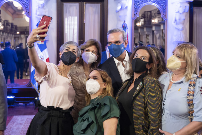 El presidente Luis Abinader y la vicepresidenta Raquel Peña encabezan el acto de juramentación del Comité gestor de Voluntariados de Instituciones Públicas, en las áreas de Cultura, Medio ambiente y Salud. Santo Domingo, República Dominicana. 15 de Abril 2021. Vp/ Jhon Escalante
