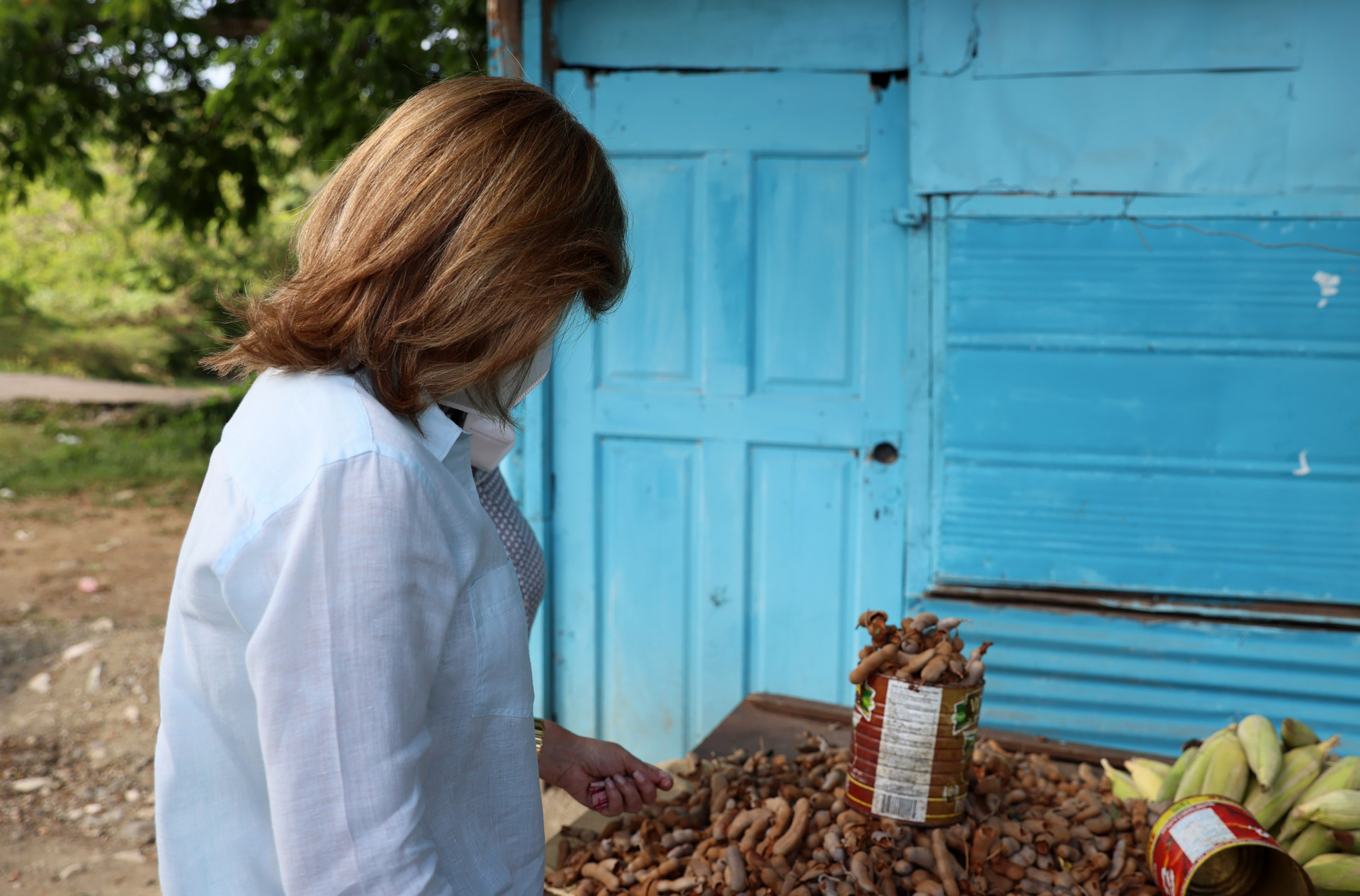 La vicepresidenta Raquel Peña hace una parada para comprar en un ventorrillo de Cambita, San Cristobal.