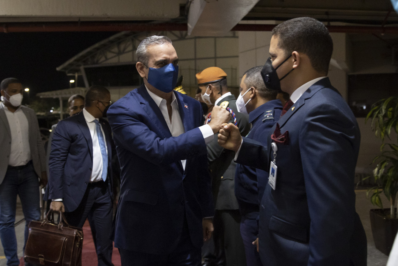 La vicepresidenta Raquel Peña le da la despedida al Presidente Luis Abinader, quien viajara este sábado a Madrid, España, donde agotará una intensa jornada de trabajo que incluye reuniones con el rey don Felipe VI, el presidente del Gobierno español, Pedro Sánchez Pérez y los expresidentes José María Aznar y Felipe González. Santo Domingo, República Dominicana. 17 de Abril 2021. Vp/ Jhon Escalante