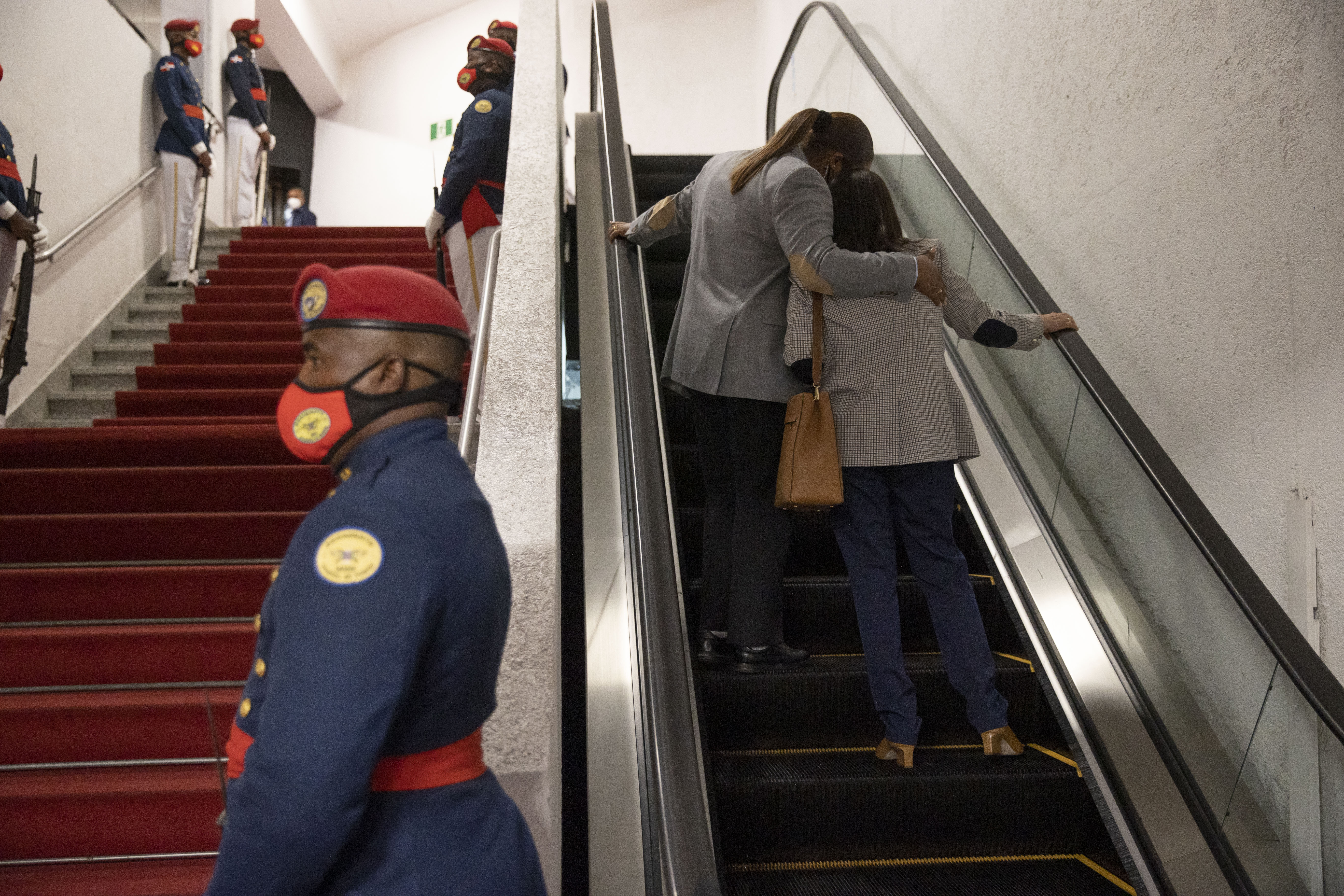 La vicepresidenta Raquel Peña le da la despedida al Presidente Luis Abinader, quien viajara este sábado a Madrid, España, donde agotará una intensa jornada de trabajo que incluye reuniones con el rey don Felipe VI, el presidente del Gobierno español, Pedro Sánchez Pérez y los expresidentes José María Aznar y Felipe González. Santo Domingo, República Dominicana. 17 de Abril 2021. Vp/ Jhon Escalante