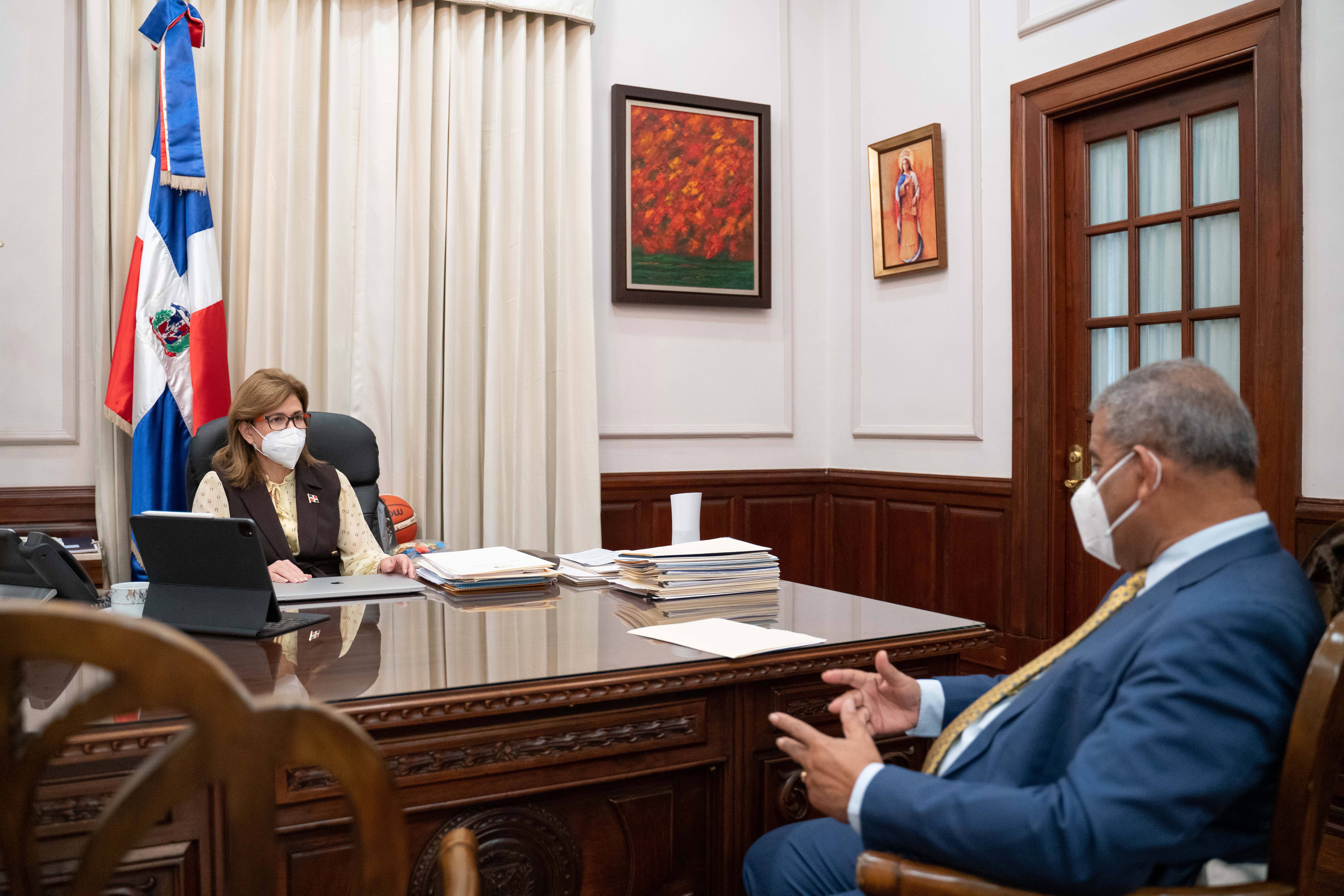La vicepresidenta Raquel Peña sostiene una reunión con el Sr. Darío Castillo Lugo, ministro de Administración Pública (MAP). Santo Domingo, República Dominicana. 28 de Abril 2021. Vp/ Jhon Escalante