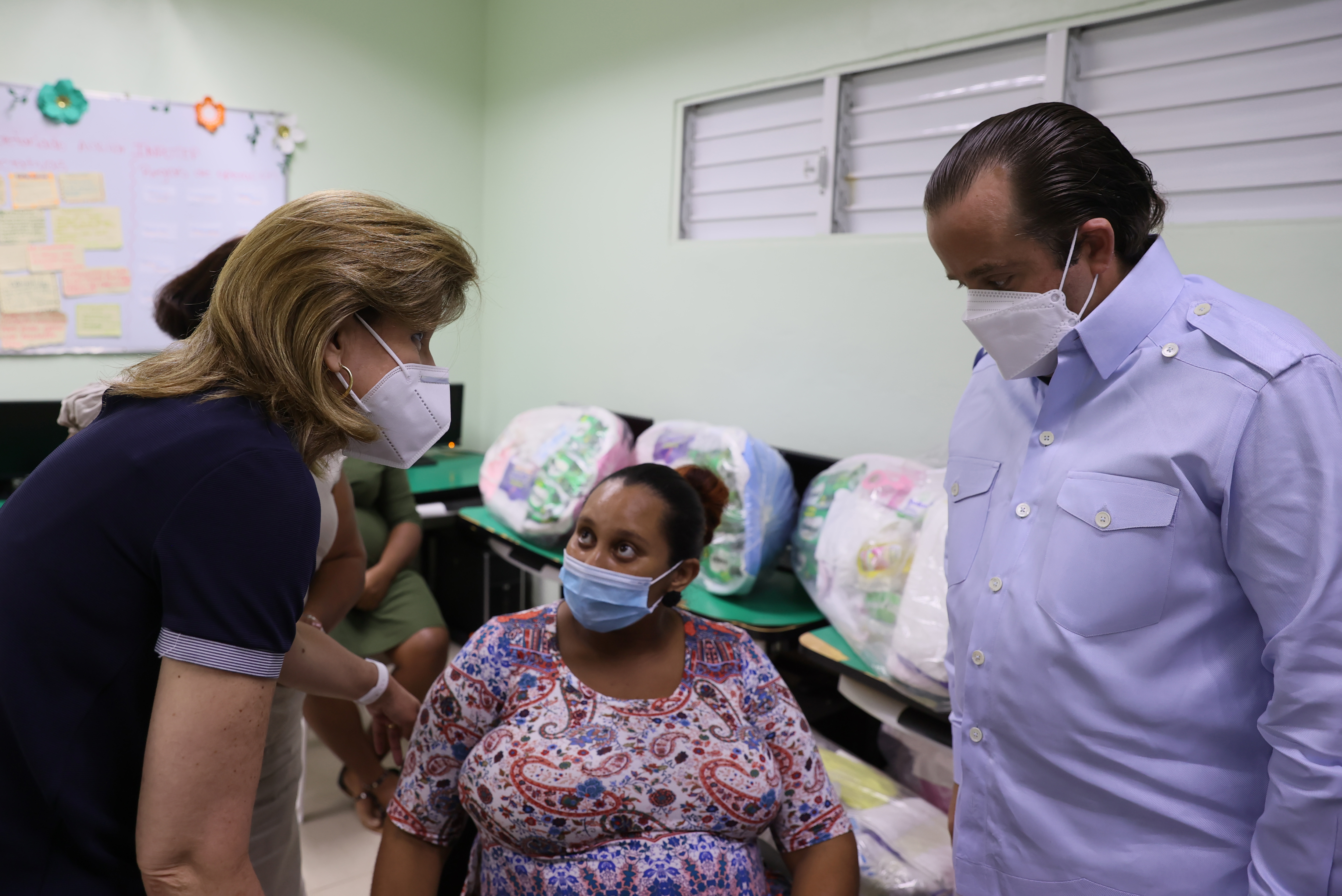 La vicepresidenta Raquel Peña sostiene un encuentro con jóvenes y mujeres de diferentes comunidades que asisten a las acciones formativas que se están desarrollando a través Progresando con Solidaridad (ProSoli) en el Centro de Capacitación y Producción Progresando (CCPP) de Baní, y aprovecha la oportunidad para hacer entrega de canastillas a mujeres embarazadas como parte del proyecto de prevención de salud. Baní, Peravia