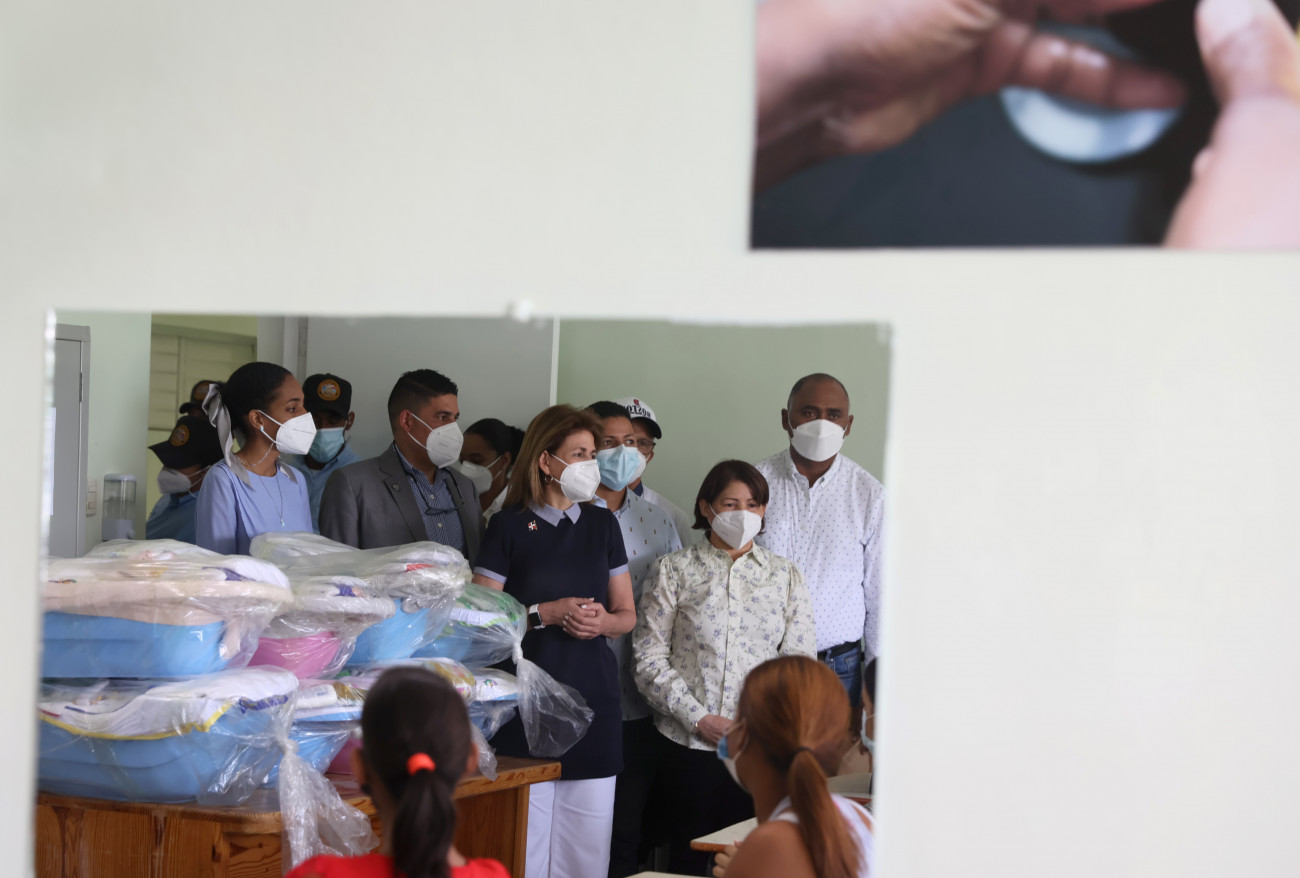 La vicepresidenta Raquel Peña sostiene un encuentro con jóvenes y mujeres de diferentes comunidades que asisten a las acciones formativas que se están desarrollando a través Progresando con Solidaridad (ProSoli) en el Centro de Capacitación y Producción Progresando (CCPP) de Baní, y aprovecha la oportunidad para hacer entrega de canastillas a mujeres embarazadas como parte del proyecto de prevención de salud.