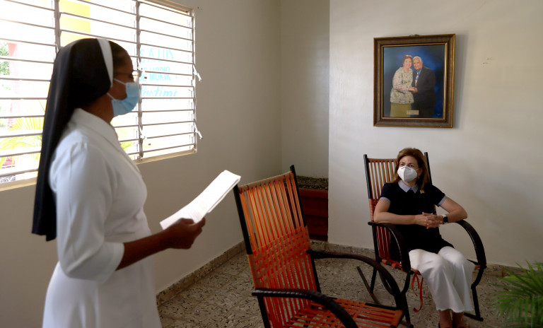 La vicepresidenta Raquel Peña realiza una visita al Hogar de Ancianos Inspiración Divina en el sector Villa David, a cargo del Consejo Nacional de la Persona Envejeciente (CONAPE). Baní, Peravia.
