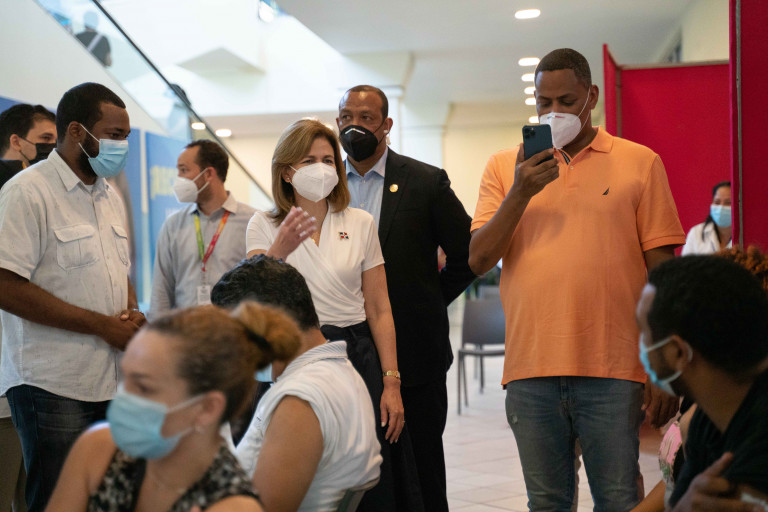 La vicepresidenta Raquel Peña supervisa el desarrollo de la jornada del Plan Nacional de Vacunación contra el COVID-19 en la sucursal Jumbo Megacentro. Santo Domingo, República Dominicana. 15 de Mayo 2021. Vp/ Jhon Escalante