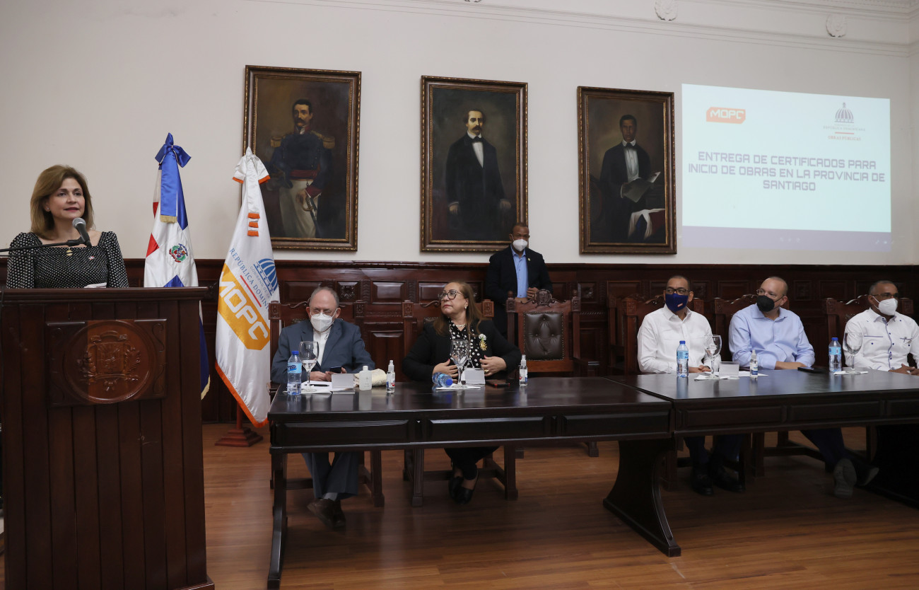 La vicepresidenta Raquel Peña encabeza el acto de entrega de certificados de obras por parte del Ministerio de Obras Públicas y Comunicaciones (MOPC) en Santiago Gobernación Provincial de Santiago.