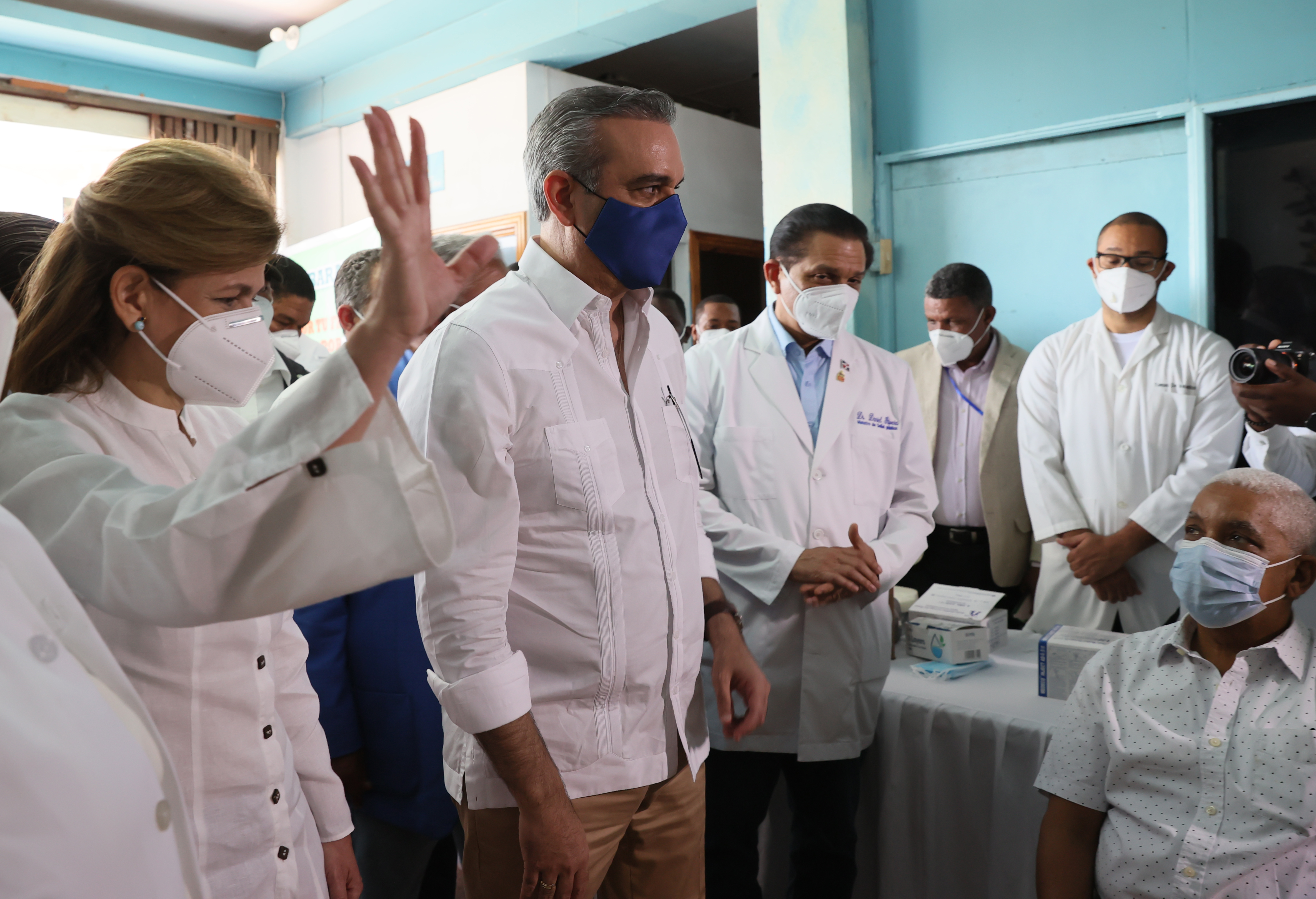 El presidente Luis Abinader y la vicepresidenta Raquel Peña supervisan el desarrollo de la jornada del Plan Nacional de Vacunación contra el COVID-19 en la Iglesia Buenas Nuevas. Sector Santa Cruz, Barahona.