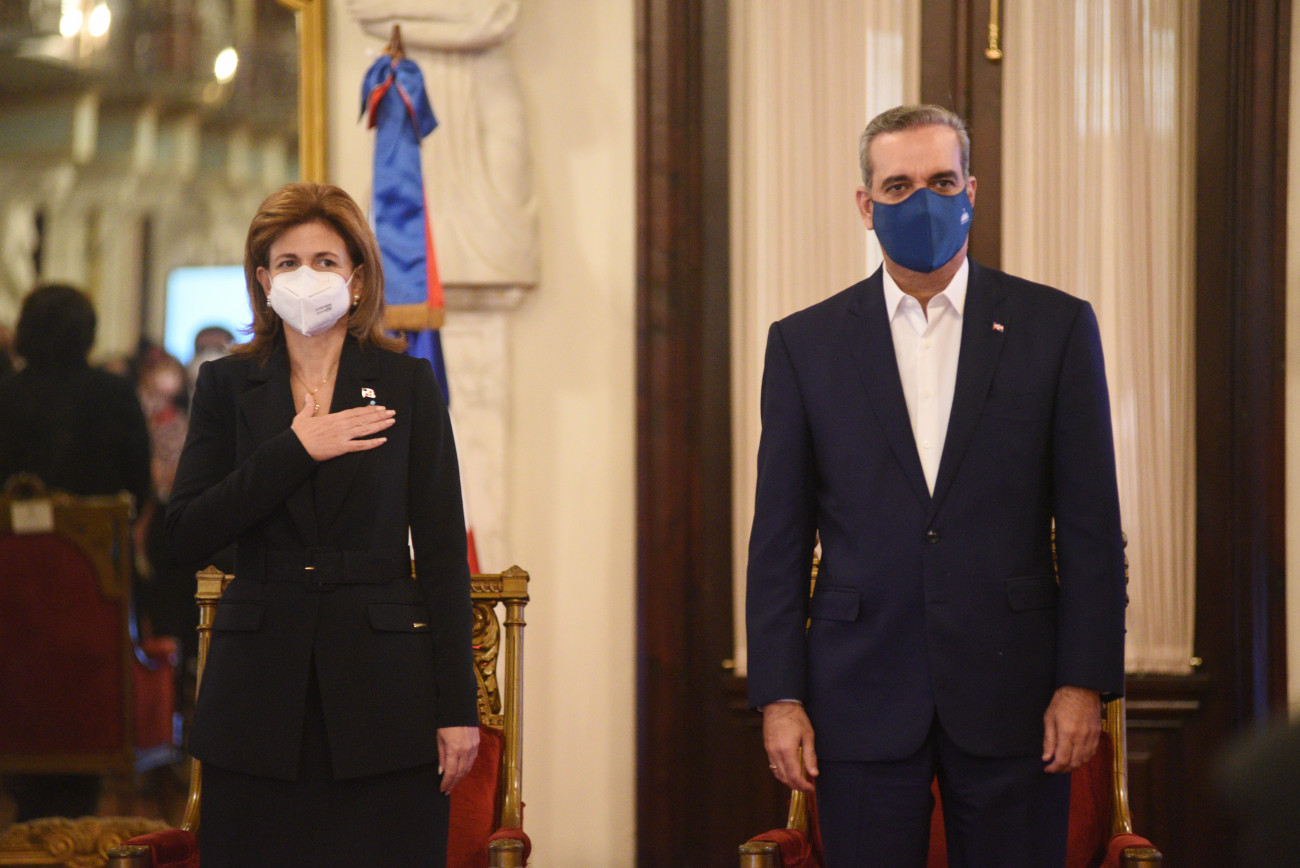 El presidente Luis Abinader y la vicepresidenta Raquel Peña encabezan la entrega del Premio Nacional de Periodismo 2020 al director del periódico Listín Diario, Miguel Franjul, en las instalaciones del Palacio Nacional junto a representantes del Ministerio de Educación (Minerd) y el Colegio Dominicano de Periodistas (CDP). Santo Domingo, República Dominicana. VP\Bayoan Freites