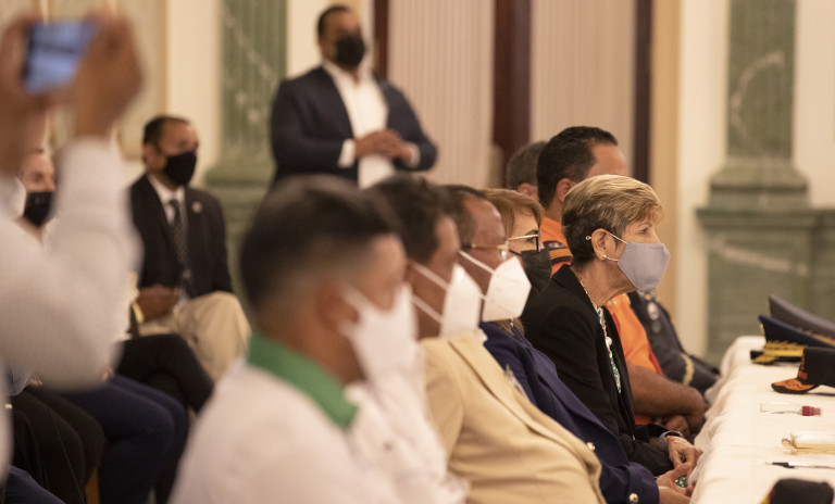 El presidente Luis Abinader y la vicepresidenta Raquel Peña, encabezan un conversatorio con los rescatistas que salvaron la vida de todos los vacacionistas que quedaron atrapados por una avería el pasado 23 de mayo del 2021 en la cabina del Teleférico de Puerto Plata.
