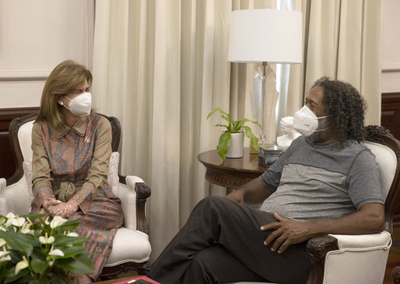 La vicepresidenta Raquel Peña y el presidente del Senado, Eduardo Estrella, sostuvieron una reunión con con el Padre Nino Ramos y comunitarios.