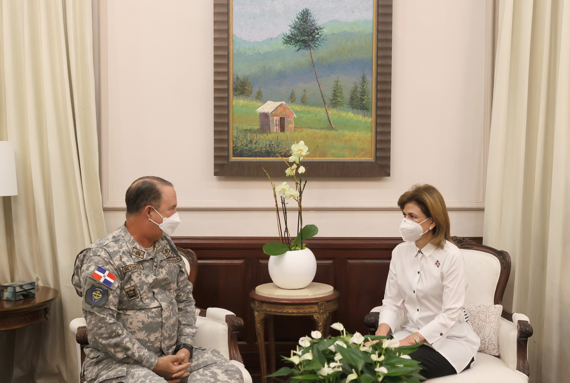 La vicepresidenta Raquel Peña sostiene una reunión con el Vicealmirante Ramón Gustavo Betances Hernández, Comandante General de la Armada de República Dominicana.