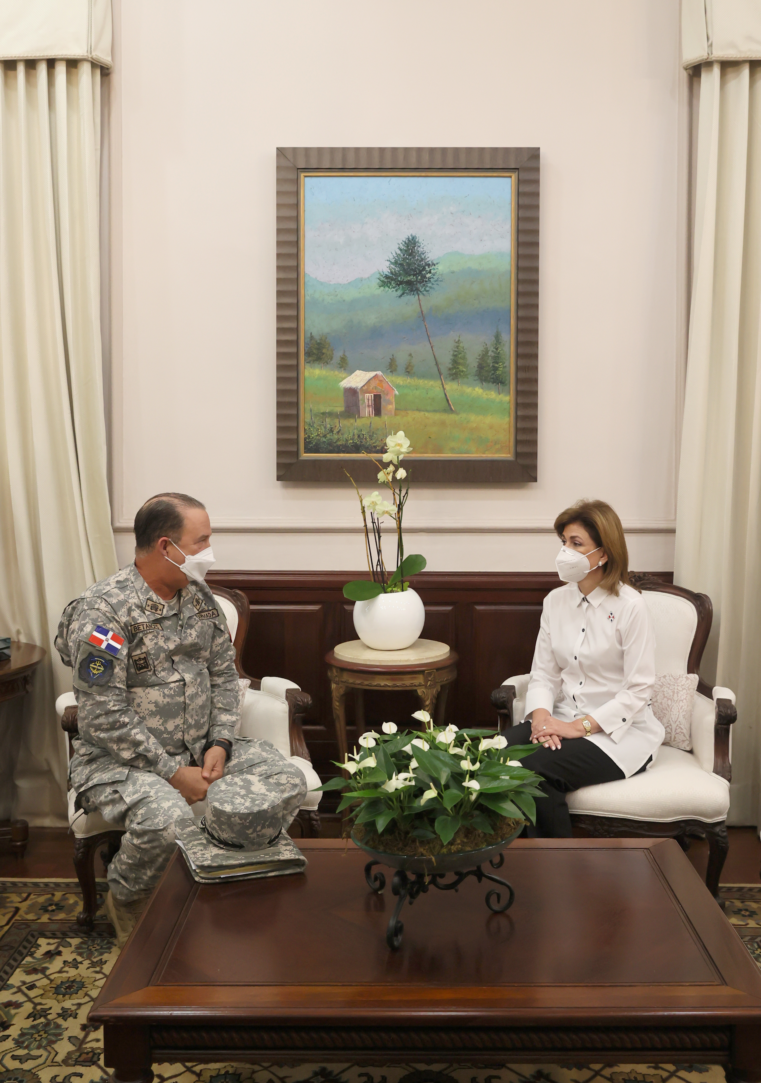 La vicepresidenta Raquel Peña sostiene una reunión con el Vicealmirante Ramón Gustavo Betances Hernández, Comandante General de la Armada de República Dominicana.