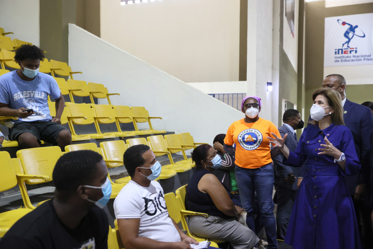 La vicepresidenta Raquel Peña supervisa el desarrollo de la Jornada Especial del Plan Nacional de Vacunación contra el COVID-19 en el Multiuso «Santo Ángel Peguero».  Complejo Deportivo de Monte Plata, Monte Plata.