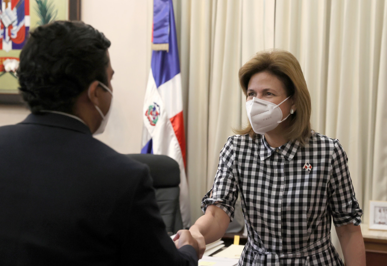 La vicepresidenta Raquel Peña sostiene una reunion con el Ing. Nelson Camilo, Coordinador General Unidad Ejecutora para la Readecuación de Barrios y Entornos (URBE).