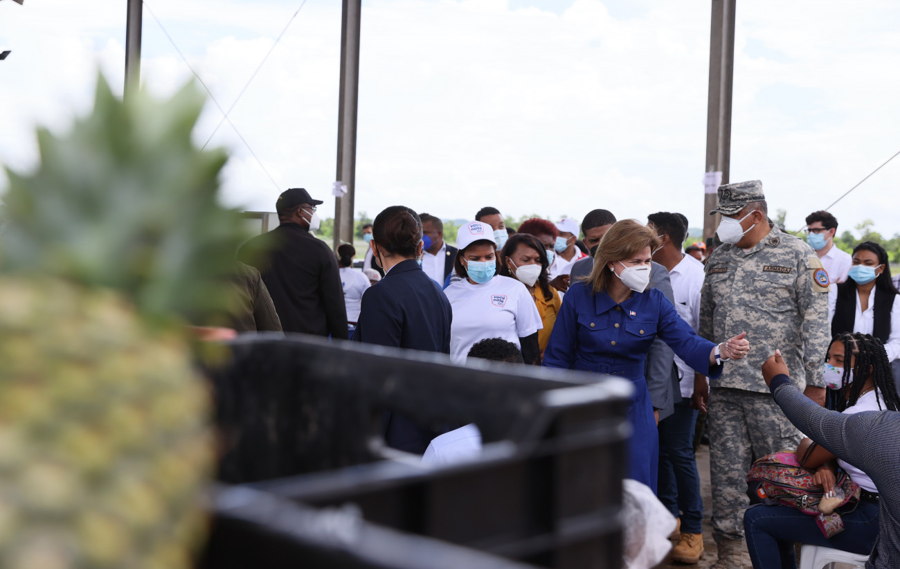 La vicepresidenta Raquel Peña supervisa el desarrollo de la Jornada Especial del Plan Nacional de Vacunación contra el COVID-19 en la Asociación de Productores de Piñas de Monte Plata (ASOPROPIMOPLA)