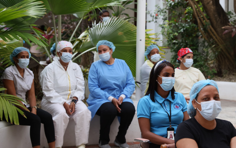 La vicepresidenta Raquel Peña, en compañía del Dr. Santiago Hazim, el director ejecutivo del Seguro Nacional de Salud (SeNaSa); visitan el Hospital Católico Sagrado Corazón de Jesús. Barrio Miramar, San Pedro de Macorís.