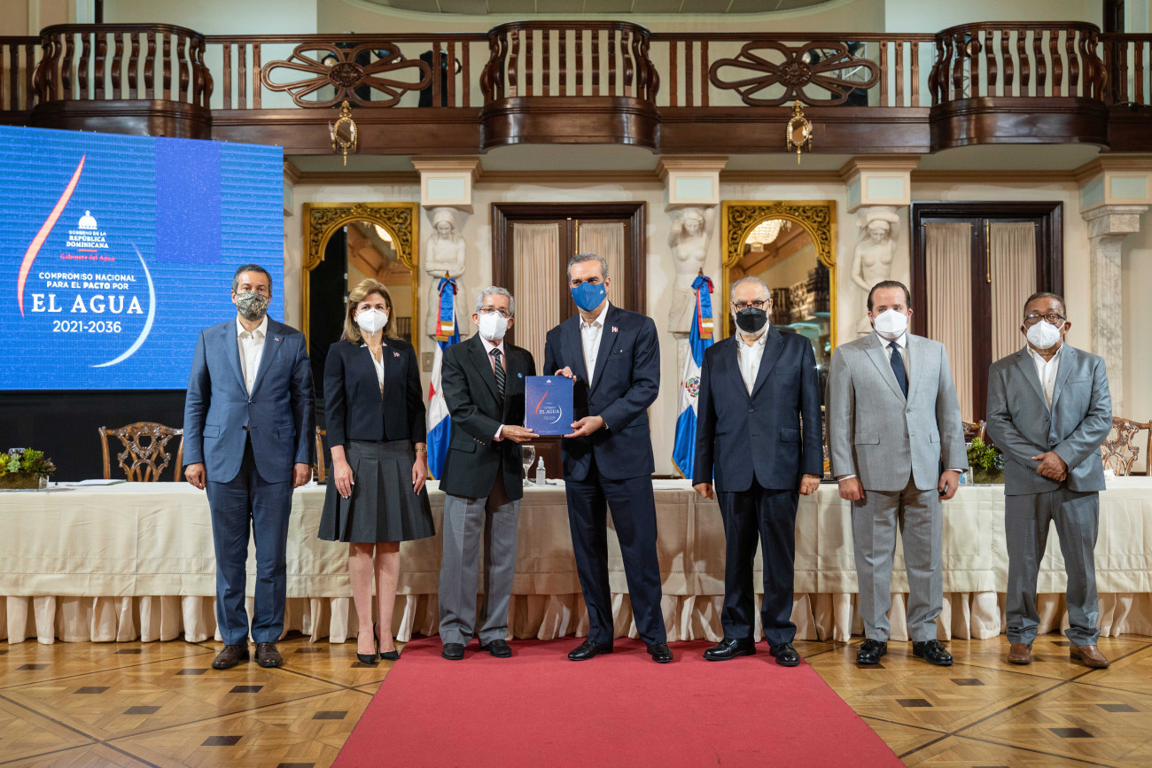 El presidente Luis Abinader y la vicepresidenta Raquel Peña encabezan el lanzamiento del «Compromiso Nacional para el Pacto por el Agua 2021-2036» en compañia de Miguel Ceara Hatton, ministro de Economía, Planificación y Desarrollo y Rafael Toribio, presidente del Consejo Económico y Social. Santo Domingo, República Dominicana. 14 de Junio 2021. Vp/ Jhon Escalante