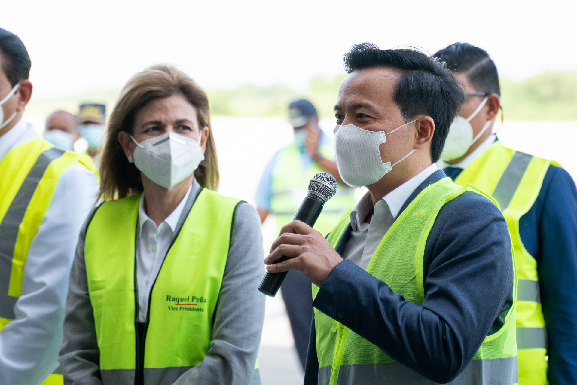 La vicepresidenta Raquel Peña en compañía de Su Excelencia Zhang Run, embajador de la República Popular China reciben un nuevo cargamento con 1,500,000 de dosis de vacunas contra el COVID-19 procedente de China. Boca Chica, República Dominicana. 16 de Junio 2021. Vp/ Jhon Escalante