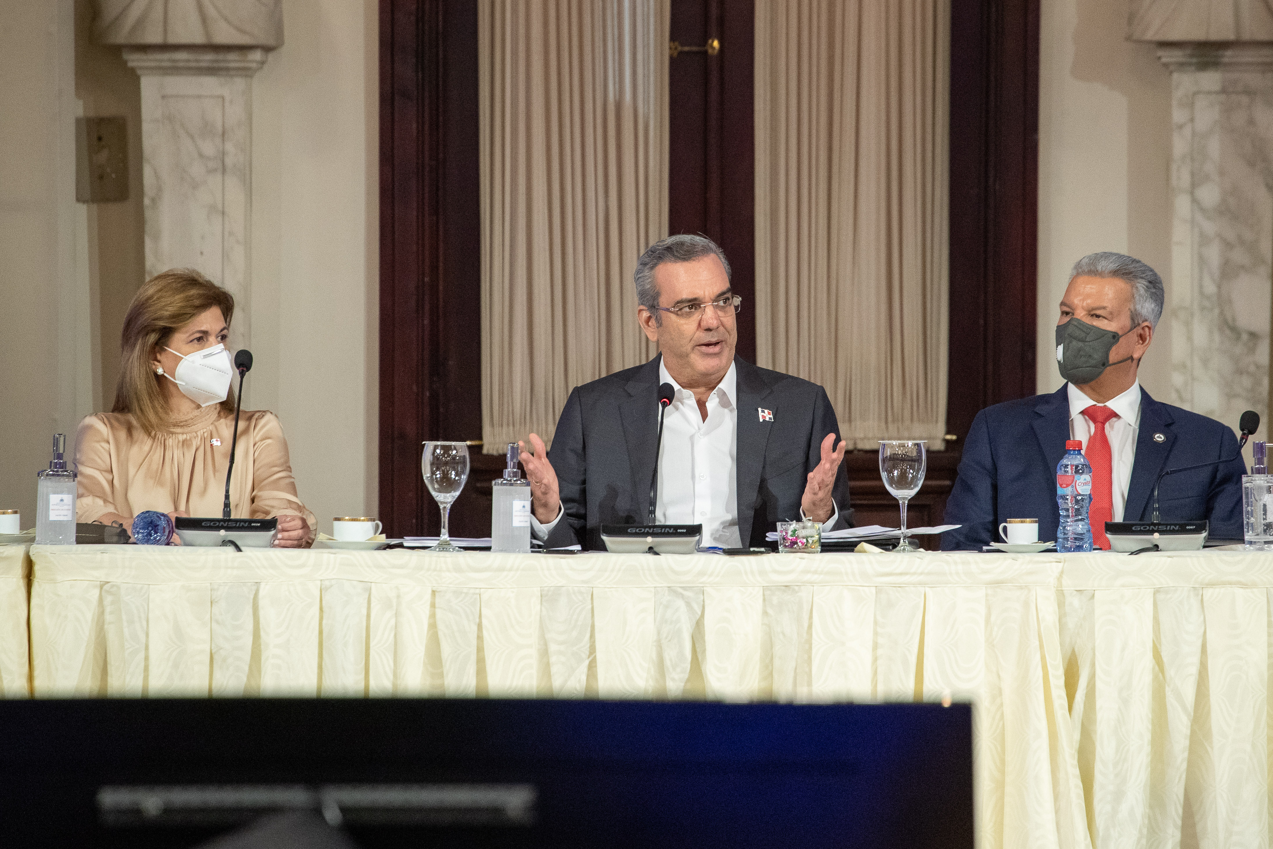 El presidente Luis Abinader y la vicepresidenta Raquel Peña encabezan «Mesa de trabajo: por la Crisis Internacional de Precios». Santo Domingo, República Dominicana. 21 de Junio 2021. Vp/ Jhon Escalante