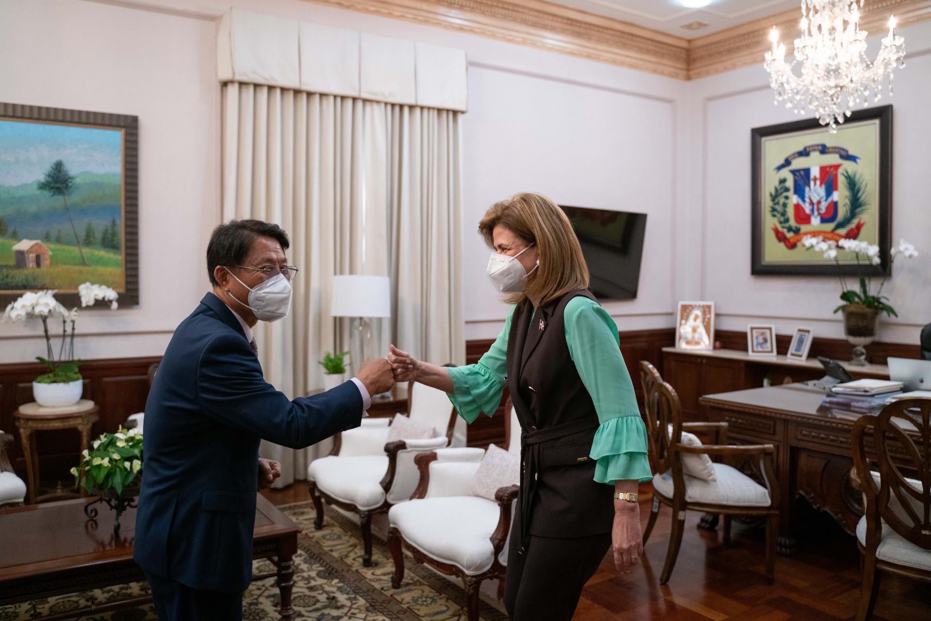 La vicepresidenta Raquel Peña sostiene una reunión con el Dr. Dae Joo Kang y la Sra. Ana Gabriela Almonte, presidente y directora ejecutiva de Good Neighbors República Dominicana. Santo Domingo, República Dominicana. 22 de Junio 2021. Vp/ Jhon Escalante
