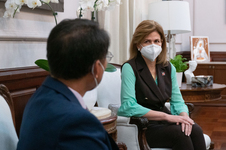 La vicepresidenta Raquel Peña sostiene una reunión con el Dr. Dae Joo Kang y la Sra. Ana Gabriela Almonte, presidente y directora ejecutiva de Good Neighbors República Dominicana. Santo Domingo, República Dominicana. 22 de Junio 2021. Vp/ Jhon Escalante