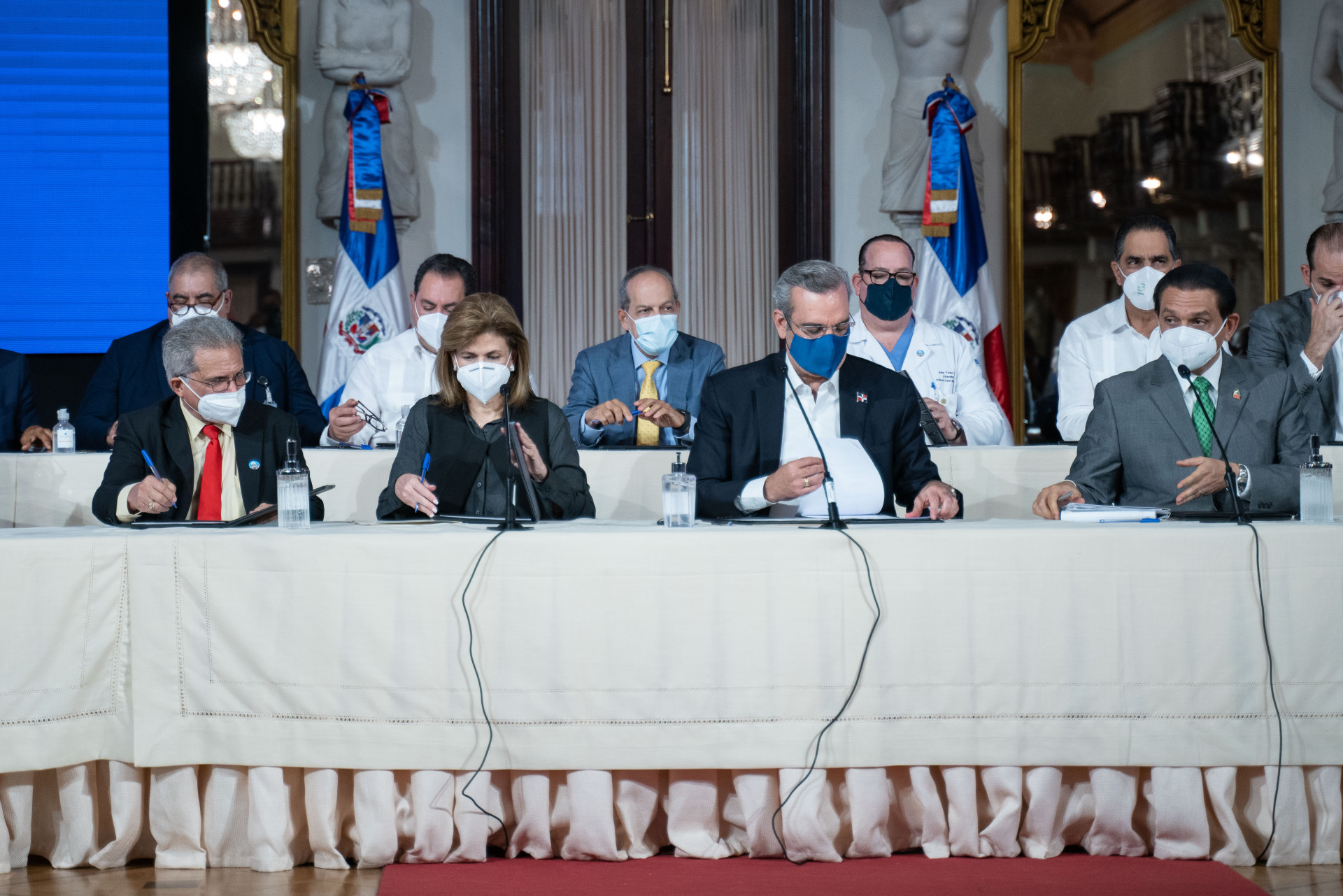 El presidente Luis Abinader, la vicepresidenta Raquel Peña y los miembros del Gabinete de Salud encabezan rueda de prensa. Santo Domingo, República Dominicana. 30 de Junio 2021. Vp/ Jhon Escalante