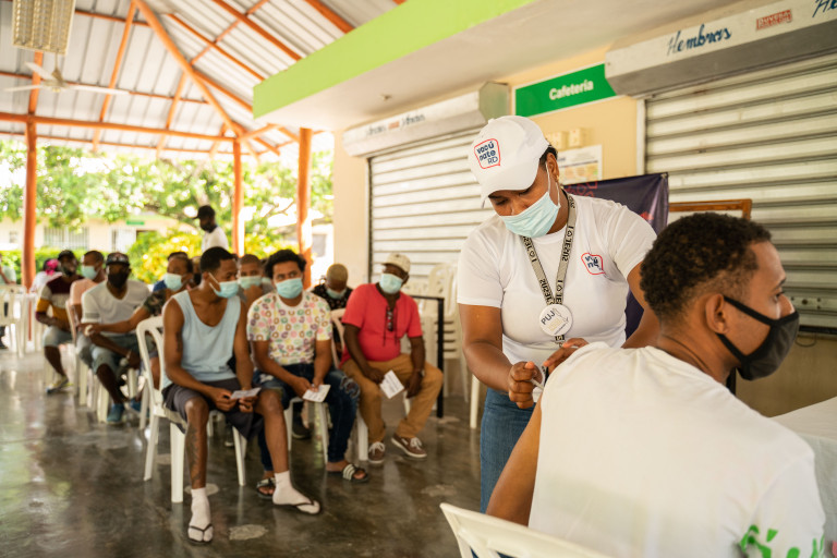 Jornada Permanente del Plan Nacional de Vacunación contra el COVID-19 en el politécnico Ann y Ted Kheel en Punta Cana