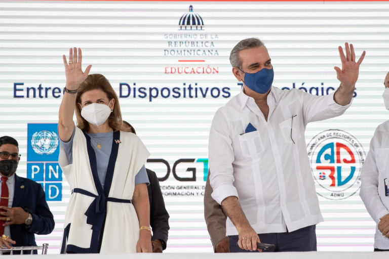 El presidente Luis Abinader y la vicepresidenta Raquel Peña encabezaron la entrega de dispositivos electrónicos en San José de Ocoa. San José de Ocoa, República Dominicana. 14 de Agosto 2021. Vp/ Jhon Escalante