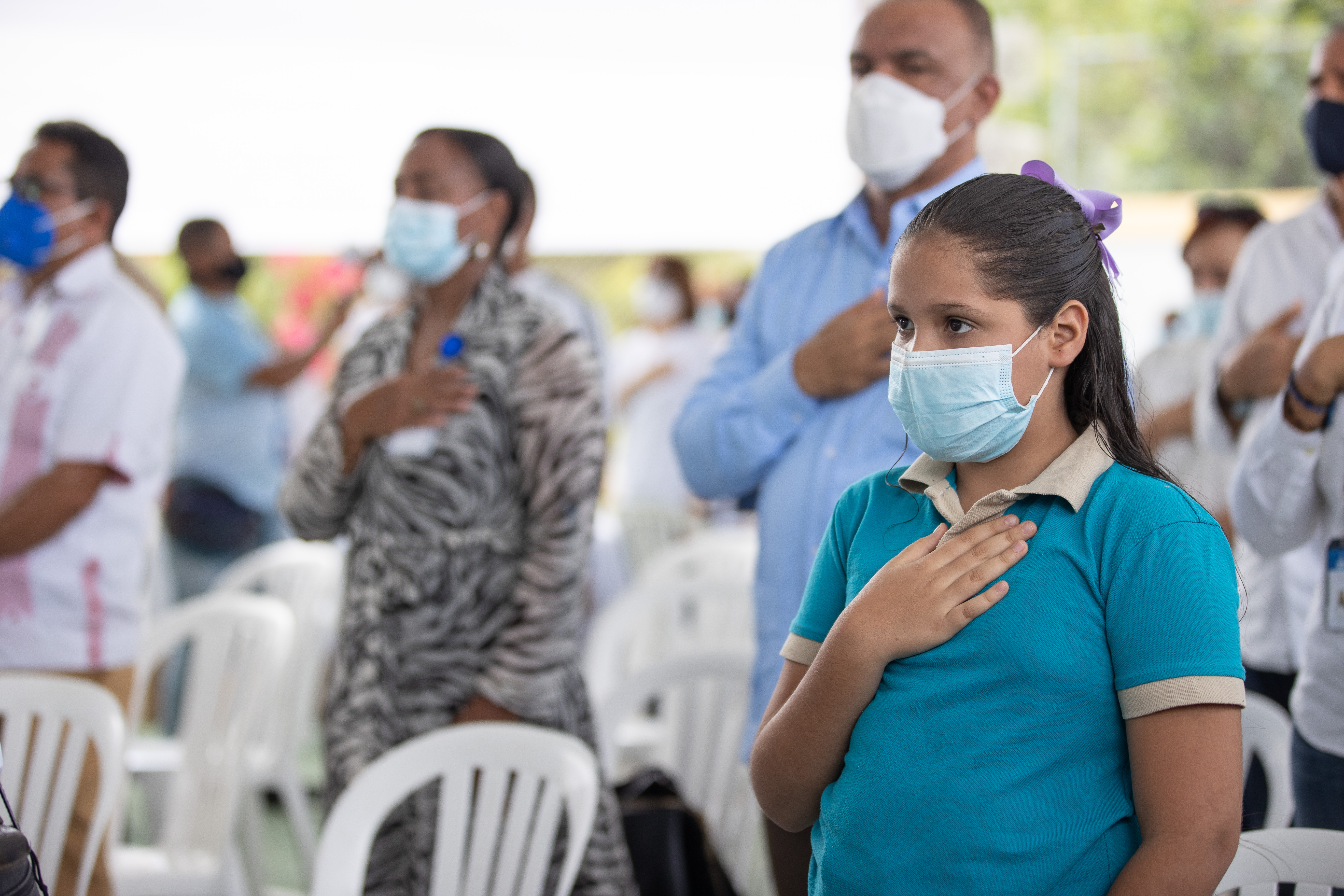 El presidente Luis Abinader y la vicepresidenta Raquel Peña encabezaron la entrega de dispositivos electrónicos en San José de Ocoa. San José de Ocoa, República Dominicana. 14 de Agosto 2021. Vp/ Jhon Escalante