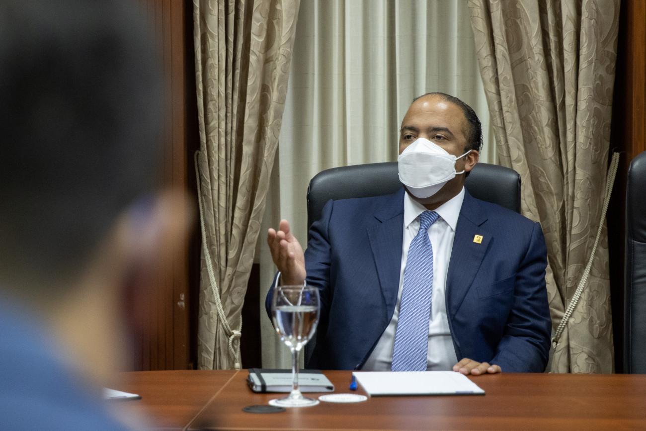 La vicepresidenta Raquel Peña se reunió con el Sr. Lisandro Macarulla, Ministro de la Presidencia, Samuel Pereyra, Administrador General de Banco de Reservas y Su excelencia Zhang Run, embajador de la República Popular de China. Santo Domingo, República Dominicana. 19 de Agosto 2021. Vp/ Jhon Escalante