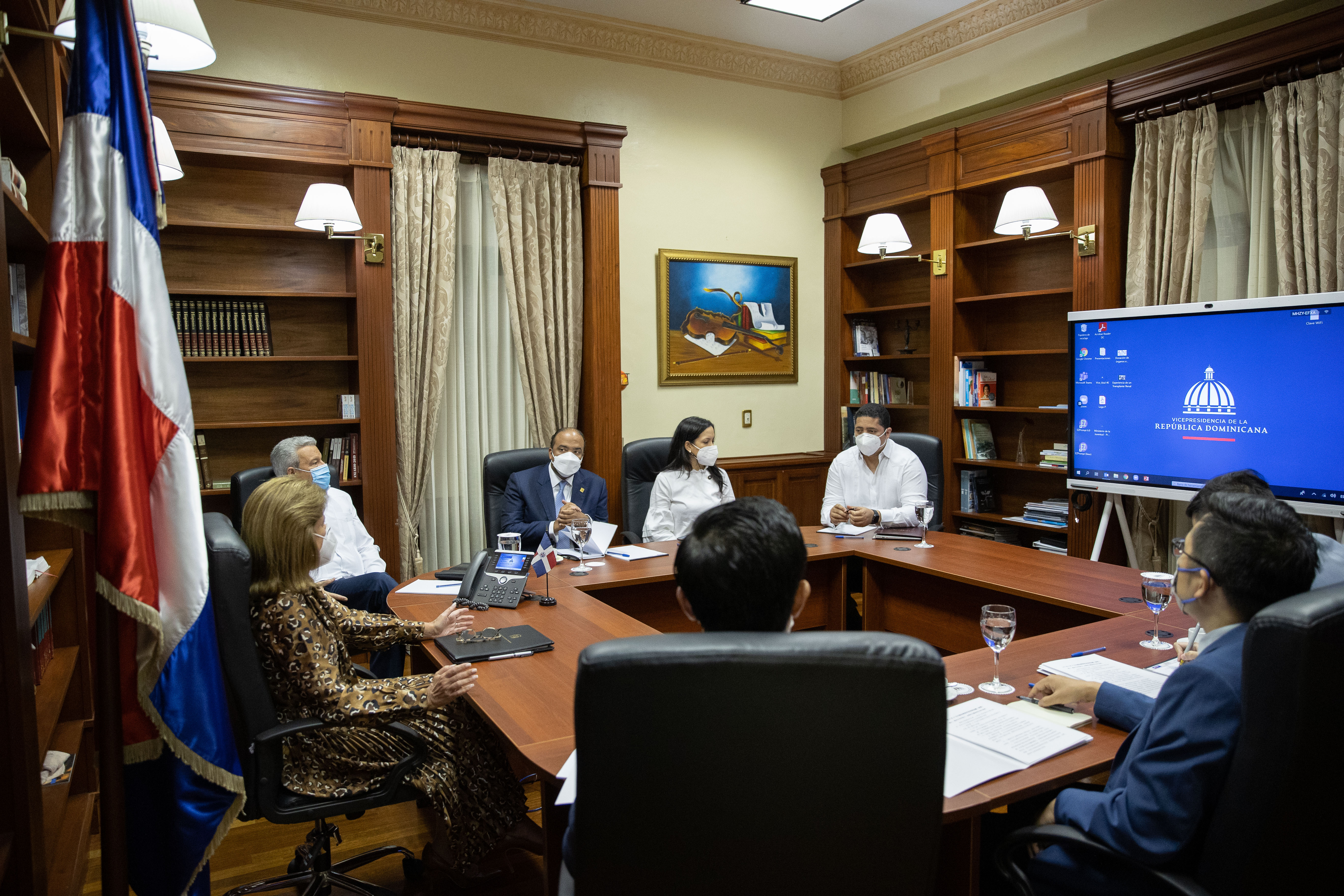 La vicepresidenta Raquel Peña se reunió con el Sr. Lisandro Macarulla, Ministro de la Presidencia, Samuel Pereyra, Administrador General de Banco de Reservas y Su excelencia Zhang Run, embajador de la República Popular de China. Santo Domingo, República Dominicana. 19 de Agosto 2021. Vp/ Jhon Escalante