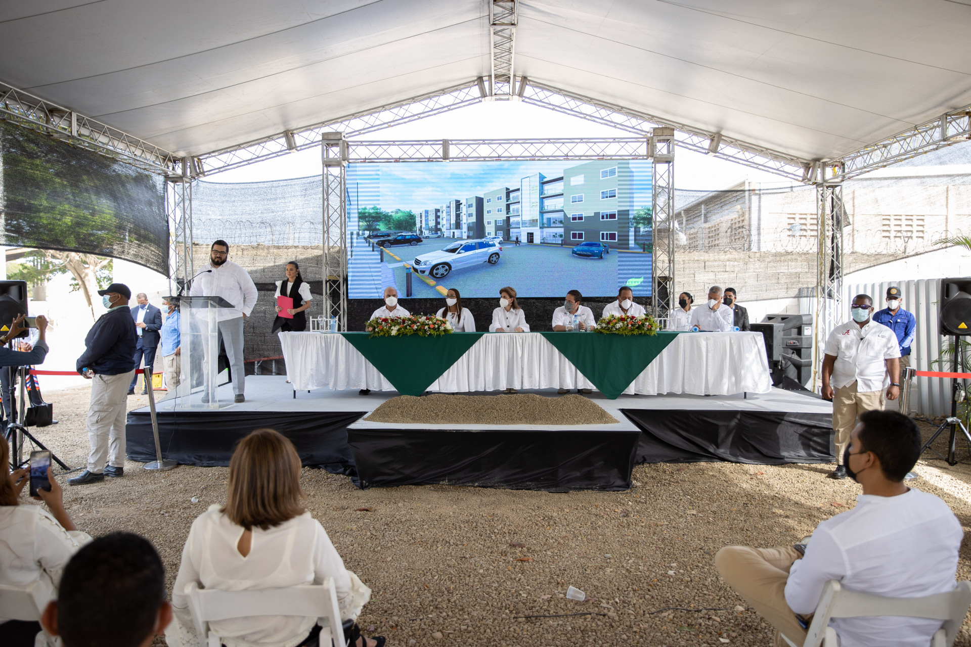 La Vicepresidenta Raquel Peña encabezó el primer picazo del complejo de apartamentos, Amelia Luz, en el municipio Mao, provincia Valverde.