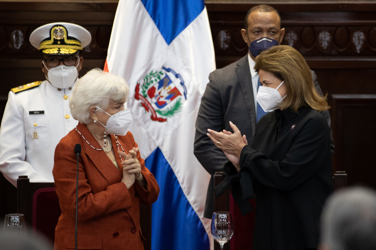El Presidente Luis Abinader y la Vicepresidenta Raquel Peña participaron en la entrega por el Senado de la República Dominicana, de un pergamino en reconocimiento a la Dra. Milagros Ortiz Bosch, por su carrera ética e intachable. Santo Domingo, República Dominicana. 23 de Agosto 2021. Vp/ Jhon Escalante